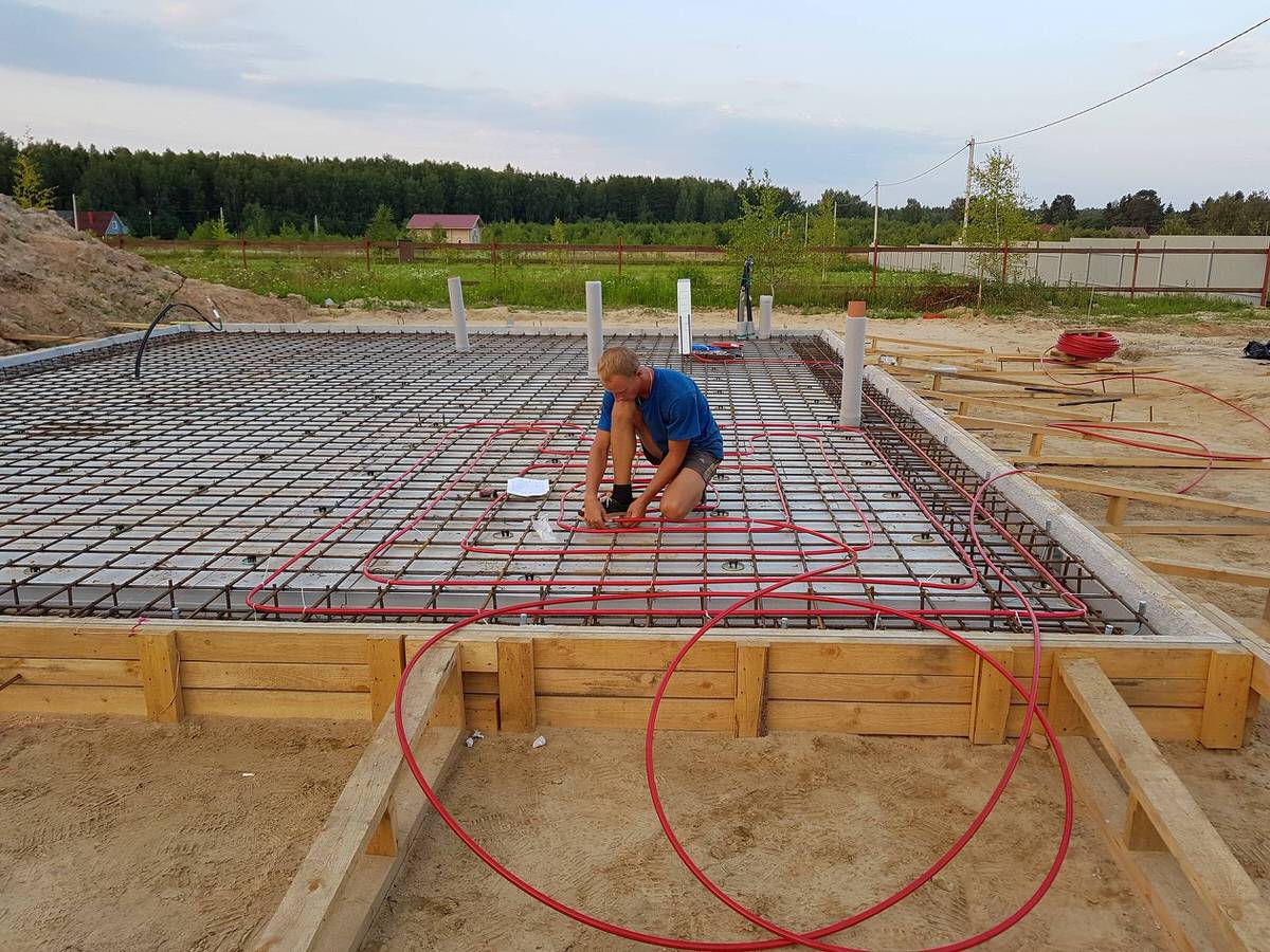 Теплая плита фундамента позволяет сэкономить на установке теплого пола и снижает затраты на электроэнергию.